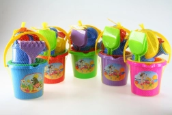 Speelset voor in het zand voor kinderen vanaf 3 jaar bevat alles voor plezier op het strand en in de zandbak: emmer, zeef, schepje, harkjes, gieter en vormpje. Dankzij de praktische samenstelling en het lichte kunststof is het ideaal voor kleine bouwers. Complete uitrusting voor in het zand, licht en veilig ontwerp en een schattige afbeelding op de emmer maken elke kleine bouwer blij.