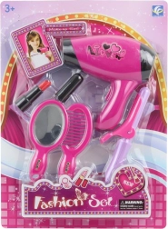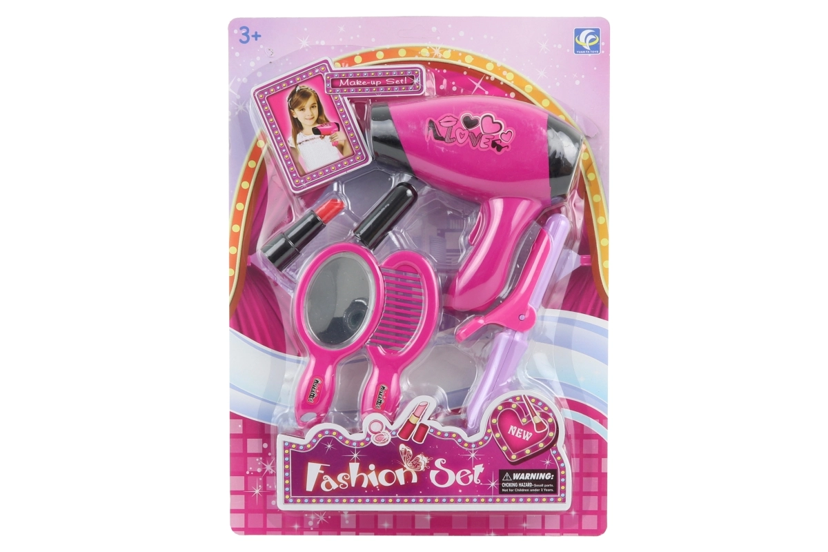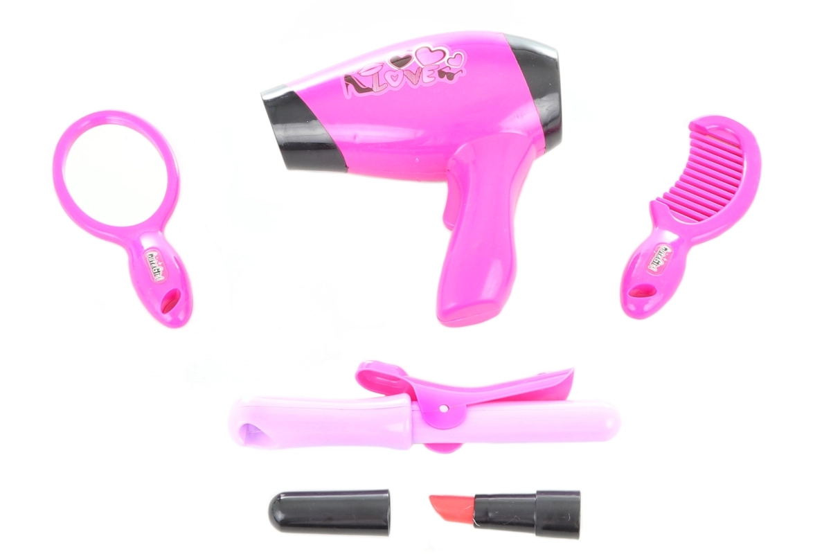 Stijlvolle beautyset voor kinderen met een werkende batterijföhn, perfect voor kleine beautyfans vanaf 3 jaar. De set bevat een föhn, krultang, kam en andere accessoires voor creatief kappersspel. Dankzij de lichte kunststof onderdelen en het veilige ontwerp is het ideaal voor rollenspel en het stimuleren van de verbeelding.