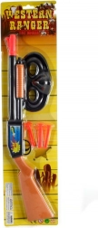Avontuurlijke westerenset voor kleine cowboys, inclusief een geweer met zuigmunitie en een gezichtsmasker. Ideaal voor creatief spel en veilig plezier vanaf 3 jaar.