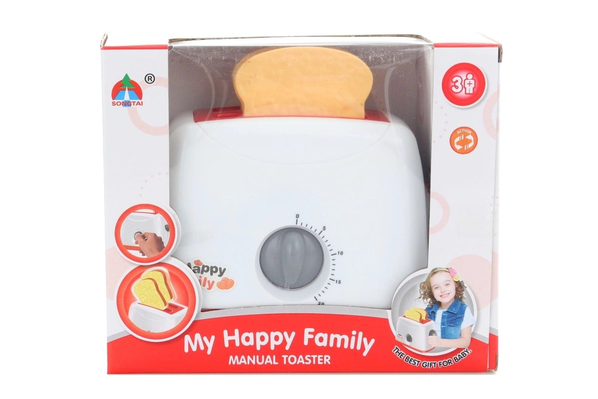 Leuke kunststof broodrooster voor kleine chef-koks met een realistisch effect – na het indrukken en draaien van de knop springen de toasts vanzelf omhoog. Ideaal voor rollenspellen in het huishouden, bevordert de fijne motoriek en de fantasie van kinderen vanaf 3 jaar.
