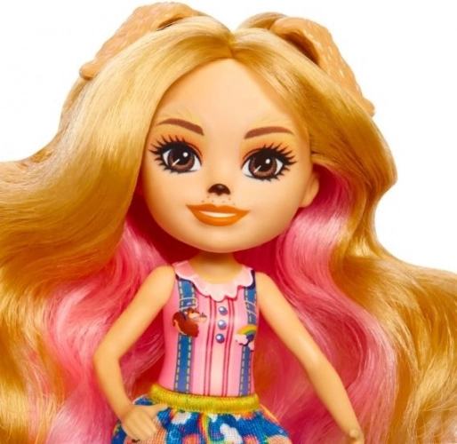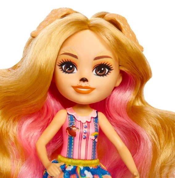 De pop Gerika Golden Retriever uit de Enchantimals-collectie brengt kinderen zachtheid, vriendschap en plezier in het zorgen voor dieren. Haar speelse look met kleurrijk haar, schattige oortjes en een rok met honden- en regenboogprint inspireert tot verhalen. Dankzij de bewegende ledematen neemt ze moeiteloos verschillende poses aan en prikkelt ze de fantasie tijdens het spelen.