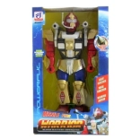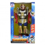 Deze plastic robot op batterijen is een ideale speelgoedkeuze voor kinderen vanaf 3 jaar. Licht- en geluidseffecten boeien het kind en prikkelen de verbeelding. De robot kan lopen en zijn interactieve bewegingen omvatten draaien en het bewegen van een zwaard en schild.