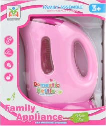 Plastic waterkoker op batterijen brengt plezier in de kinderkamer. Het licht op en maakt geluiden zoals een echte waterkoker bij het koken van water, wat een realistische sfeer aan het spel toevoegt.