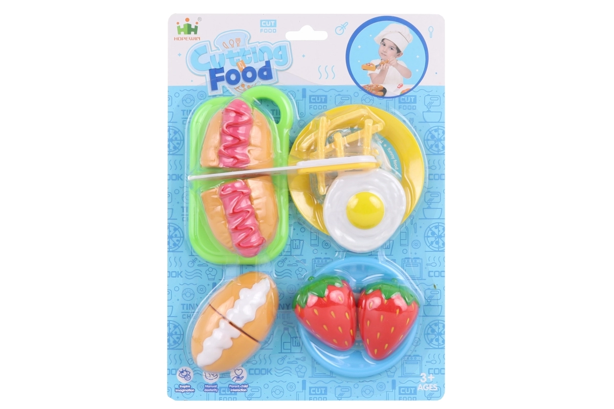 De set bevat diverse etenswaren en keukengerei, zodat kinderen kunnen doen alsof ze koken, tafelen en bedienen. De set is veilig, kleurrijk en ideaal om samen mee te spelen met ouders en broers of zussen.