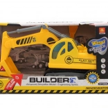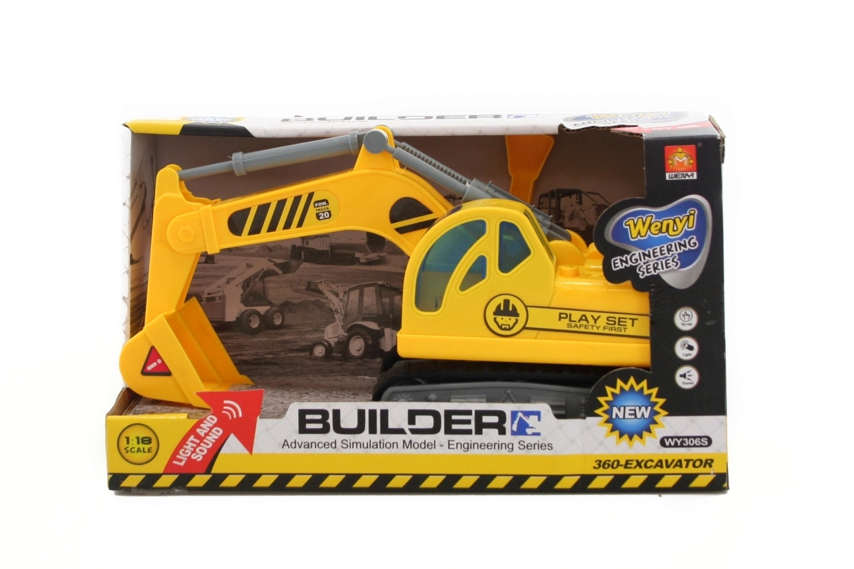 Graafmachine op batterijen met afmetingen ca. 24 x 12 cm. Afmetingen van de verpakking ca. 25 x 10 x 14 cm. Werkt op 3x AG13-batterij (inbegrepen). De graafmachine maakt geluiden en geeft licht. Leeftijd 3+