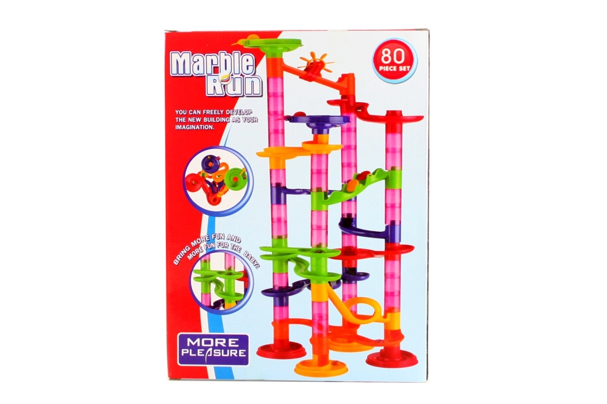 Deze kunststof knikkerbaan met in totaal 80 onderdelen biedt uren creativiteit en plezier voor kinderen vanaf 3 jaar. Bevat een waterrad, diverse glijbanen en andere elementen die logisch denken, motoriek en creativiteit stimuleren.