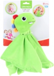 Aangename en zachte inslaper in groene kleur met een dinosaurus hoofd. De inslaper rammelt ook. Afmetingen van de inslaper 28,5 x 28,5. Afmetingen van de verpakking 33 x 20 cm. Leeftijd 0m+