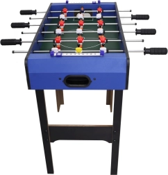 Deze tafelvoetbal met duurzame constructie en blauw speelveld biedt snel en spannend spel wanneer je maar wilt. Stabiele houten poten en kwalitatieve metalen stangen met anti-slip handgrepen garanderen nauwkeurige aansturing van de spelers en comfortabele bediening.
