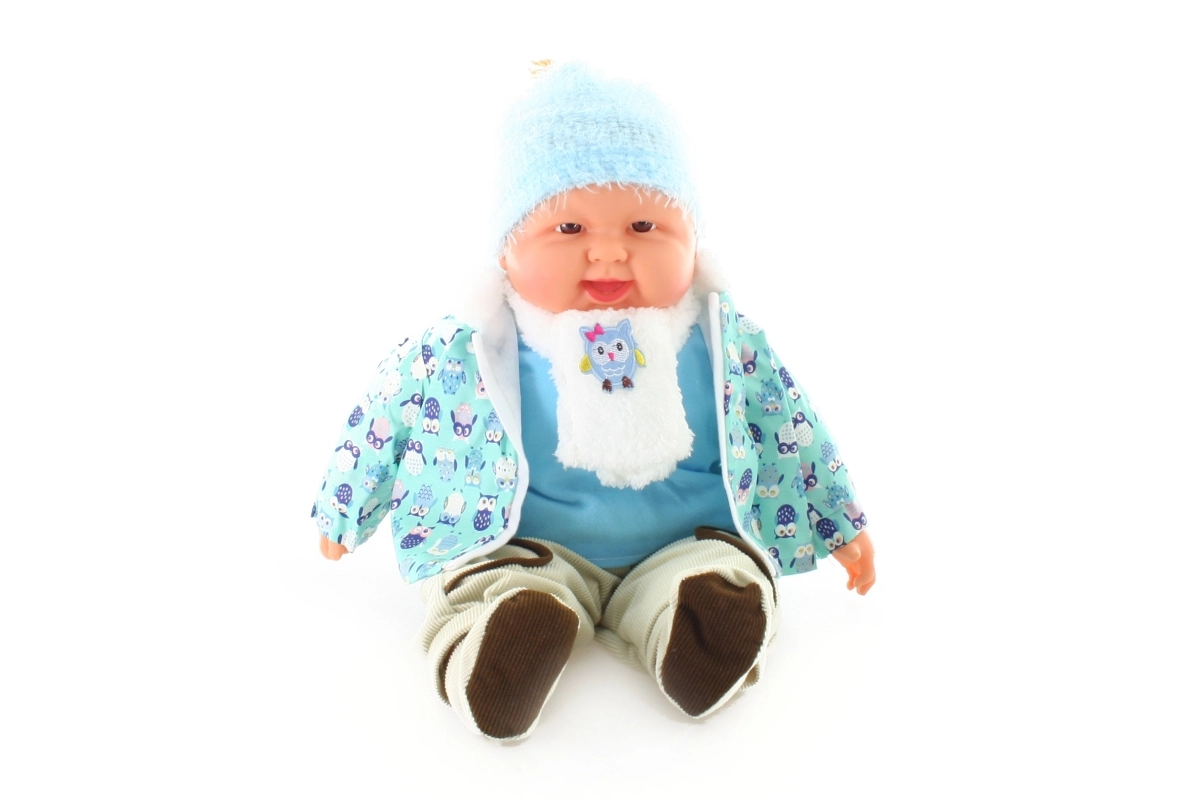 Schattige grote babypop – jongetje met een zacht lijfje die ieder kind zal blij maken. Het outfitje met uiltjes kan makkelijk uit- en aangetrokken worden. Ideaal voor het ontwikkelen van fantasie en zorg. Zacht lichaam, gemakkelijk uitneembare kleding, groter formaat voor comfortabel knuffelen en dragen.