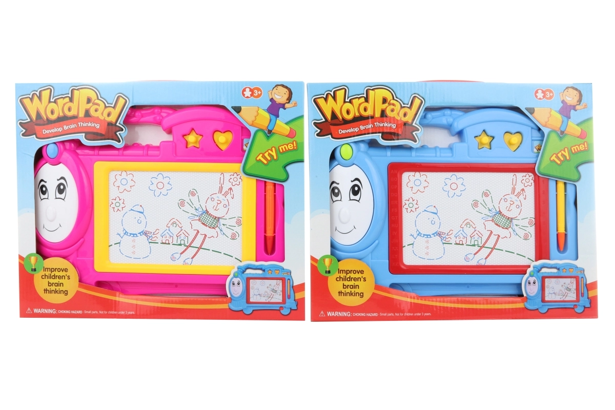 Een leuk en gemakkelijk te gebruiken tekenbord in de vorm van een treintje zal elke kleine kunstenaar blij maken. Kinderen kunnen steeds opnieuw tekenen, stempelen en wissen – zonder rommel en zonder papier. Inclusief een bevestigde pen en 2 stempels voor nog creatiever spel. Ideaal voor de ontwikkeling van de fijne motoriek, fantasie en voorbereidend leren thuis en onderweg.