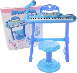 Blauw kinderpiano biedt niet alleen klassieke tonen, maar ook verschillende achtergrondmelodieën en de mogelijkheid om muziekinstrumenten te veranderen. De verpakking bevat een microfoon en een aansluiting voor MP3-speler.