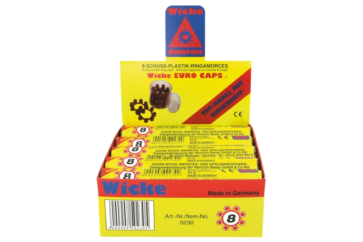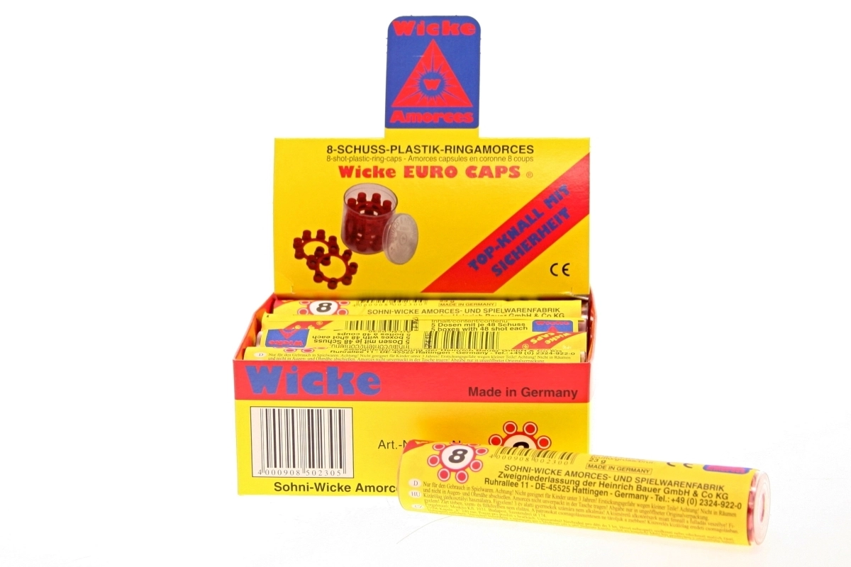 Geschikt voor speelgoedpistolen met knalkapsels die zijn ontworpen voor 8-schots ringen. Eenvoudig in gebruik en een betrouwbaar effect maken deze kapsels een uitstekende keuze voor politie- en avonturenspellen of carnavalskostuums.