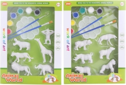 Prikkel de fantasie van kinderen met de creatieve schilderset met safari-diertjes. In de verpakking vind je kunststof figuurtjes om in te kleuren, 6 verfkleuren, 2 kwastjes en een palet. De figuurtjes zijn ca. 7 cm groot, aanbevolen voor kinderen vanaf 3 jaar.