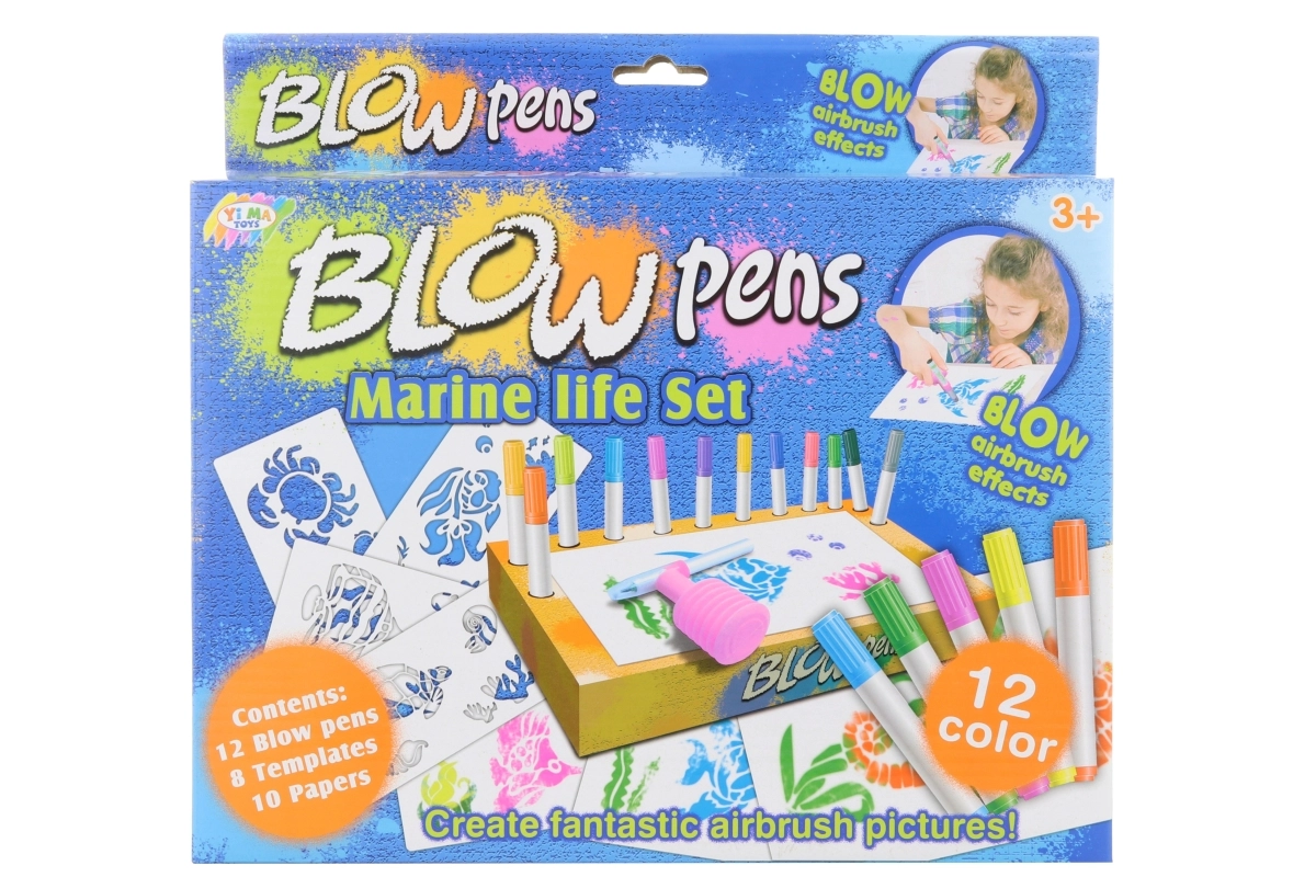 Deze uitgebreide set blaasstiften is perfect voor de eerste tekenexperimenten en voor leuk knutselen met kinderen. Dankzij de zee-thema sjablonen en de blaasopzet met pompje ontstaan moeiteloos vloeiende kleurovergangen en mooie spuiteffecten.