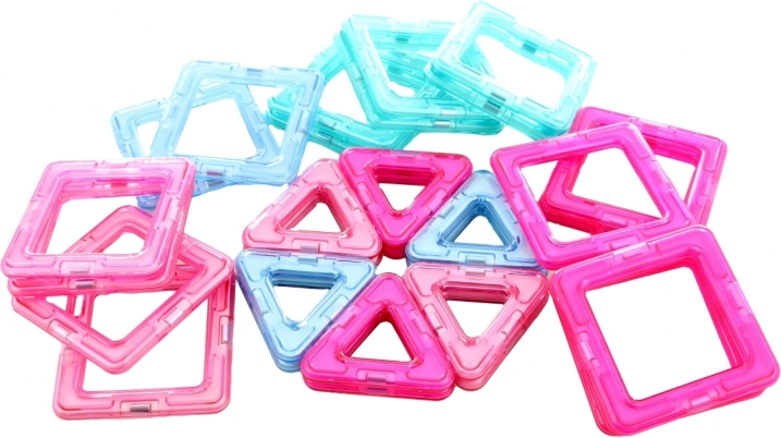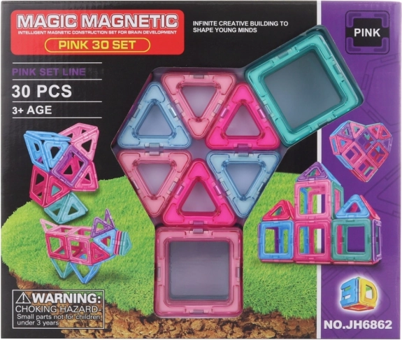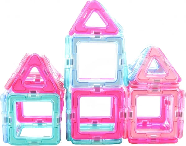 Geniet van uren creatieve pret met deze magnetische bouwset. De set bevat 30 onderdelen die eenvoudig aan elkaar klikken dankzij magnetische randen. De kleurrijke onderdelen in roze, blauw en turquoise zijn transparant en zien er indrukwekkend uit bij het bouwen van verschillende 3D-objecten.
