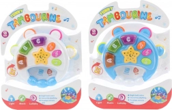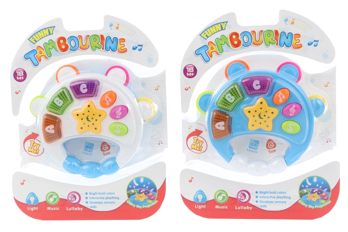 Leuke kunststof tamboerijn voor de allerkleinsten vanaf 18 maanden. Bij het indrukken van de knoppen licht hij op en maakt hij vrolijke geluiden die zintuigen en motoriek ontwikkelen. In de verpakking zitten 2 AAA-batterijen, dus hij is meteen na het uitpakken speelklaar.
