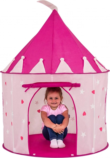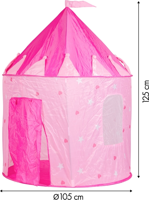 Ieder kind verdient zijn eigen speelplekje. Deze speeltent in de vorm van een prinsessenkasteel biedt een knusse en veilige plek voor fantasie, verstoppertje en lezen. Dankzij het aantrekkelijke design met hartjes en sterretjes past hij perfect in de kinderkamer én op het terras of in de tuin.