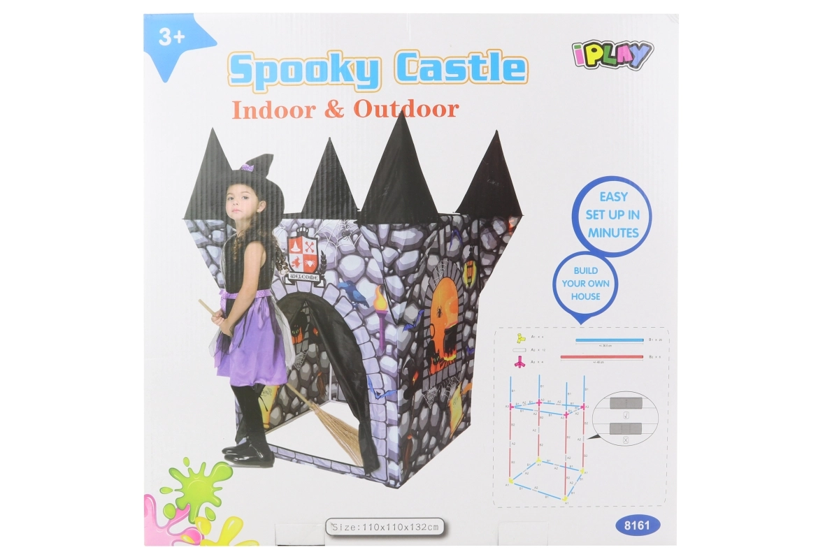De magische heksen-tent voor kinderen brengt volop fantasie en spelplezier in elke kinderkamer en tuin. Met afmetingen van ca. 110 × 110 × 132 cm (inclusief torentjes) biedt hij voldoende ruimte om te spelen, te verstoppen en een eigen betoverde wereld te creëren. Eenvoudig op te zetten en ideaal voor kinderen vanaf 3 jaar. Licht en draagbaar, geschikt voor binnen en buiten en perfect voor creatief spel.