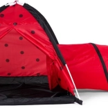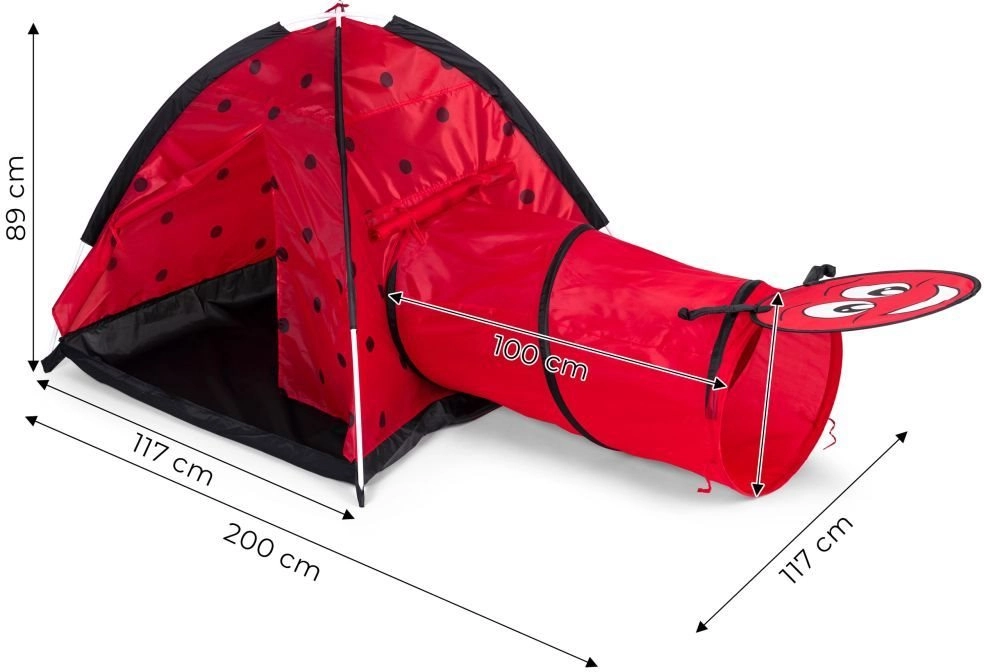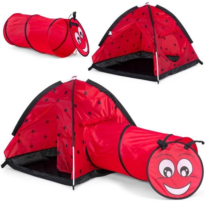 Verander een kamer of tuin in een plek vol avontuur. De kindertent met lieveheersbeestje-motief nodigt kinderen uit tot ontdekken en creatief spel. De iglo-constructie met één ingang en een aansluiting voor de tunnel stimuleert bewegen, kruipen en verstoppen, wat zowel motoriek als fantasie ontwikkelt. Dankzij het lichte frame verplaats je de tent eenvoudig, zodat kinderen er overal van kunnen genieten.