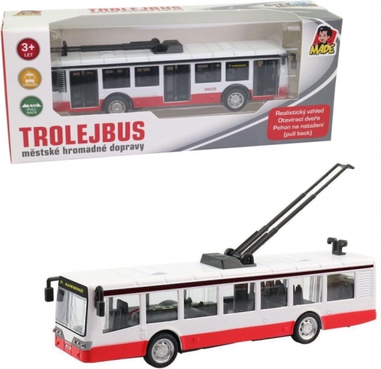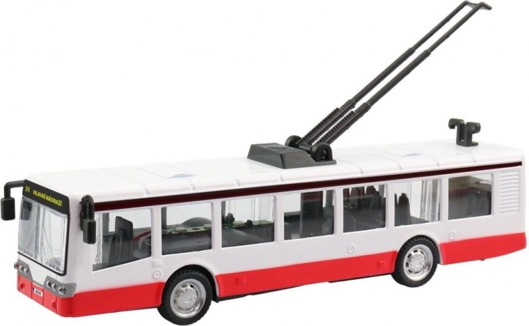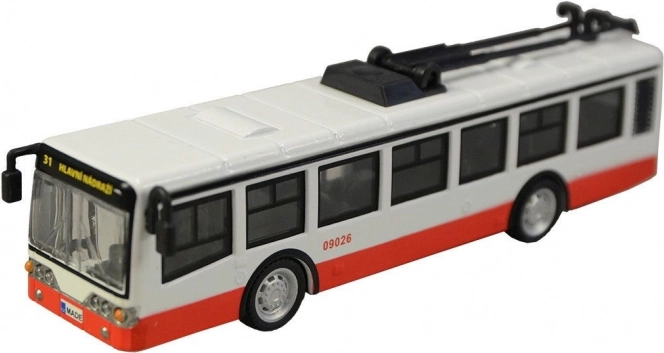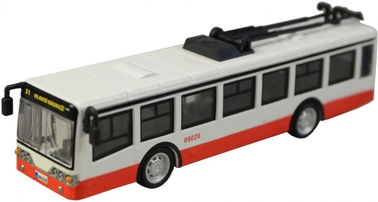 Ontdek een gedetailleerd uitgewerkte trolleybus in de klassieke rood-wit-zwarte kleurcombinatie die je kent uit sommige Tsjechische steden. Het model is gemaakt van hoogwaardig metaal met kunststof onderdelen, waardoor het zowel stevig is als licht in kinderhanden. Dankzij het terugtrekmechanisme rijdt de trolleybus na het loslaten vanzelf en zorgt hij voor veel speelplezier.