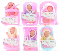 Ontdek de magie van zorgen voor een baby met een lieve pop en thematische accessoires. Elke set bevat andere uitrusting – van een stoeltje tot een badje en bedje en zelfs een loopstoeltje – plus een bijpassende outfit. Dankzij het formaat van ca. 10 cm is de pop licht, makkelijk mee te nemen en ligt hij fijn in kleine handjes.
