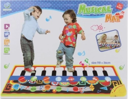 Leuke en leerzame muzikale speelmat voor kleine muzikanten, die speelt als een piano en andere muziekinstrumenten. Ideaal voor de ontwikkeling van ritme en gehoor bij kinderen. Compact formaat ca. 110 × 36 cm, voeding 3× AA-batterijen (niet inbegrepen). Geschikt voor kinderen 3+.