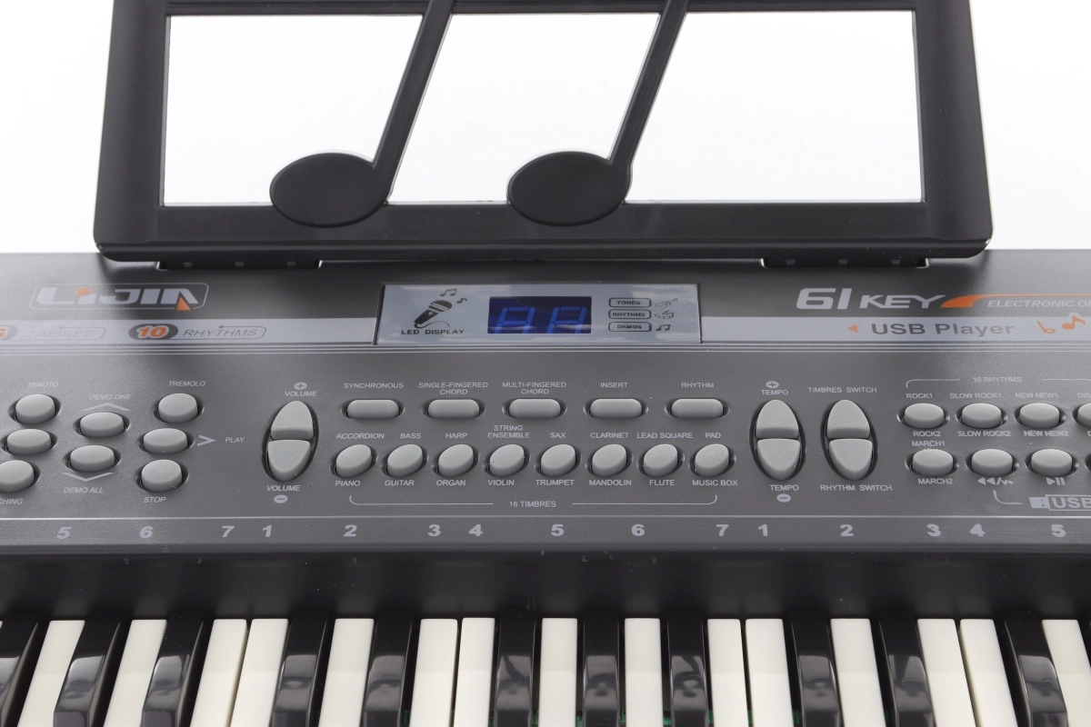 De kunststof elektronische piano met 61 toetsen is een uitstekende keuze voor kinderen en beginners die hun muzikaal gehoor en ritme willen ontwikkelen. Dankzij ingebouwde functies zoals verschillende begeleidingsmelodieën en keuze uit instrumentgeluiden maak je eenvoudig je eigen muzikale optreden.