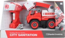 Leuk en leerzaam speelgoed voor kleine technici: een schroefbare brandweerauto die kinderen in elkaar zetten met de meegeleverde schroevendraaier of boormachine. Nadat je de motor uit de boormachine in de auto hebt geplaatst, kan het voertuig op afstand worden bediend en vooruit en achteruit rijden. De auto maakt geluidseffecten, is geschikt vanaf 3 jaar en werkt op 4× AA (niet inbegrepen) en 3× AG13 (wel inbegrepen).