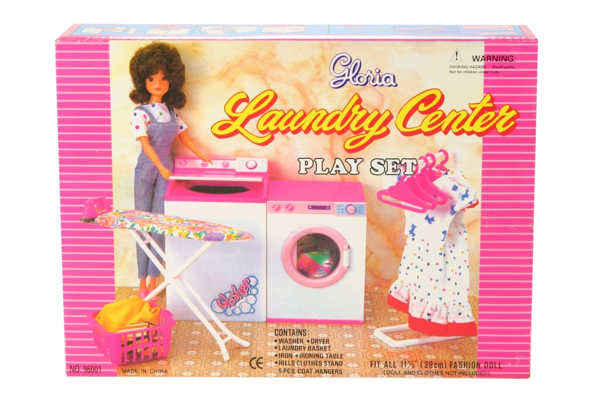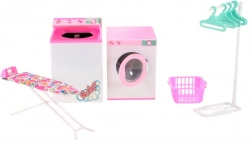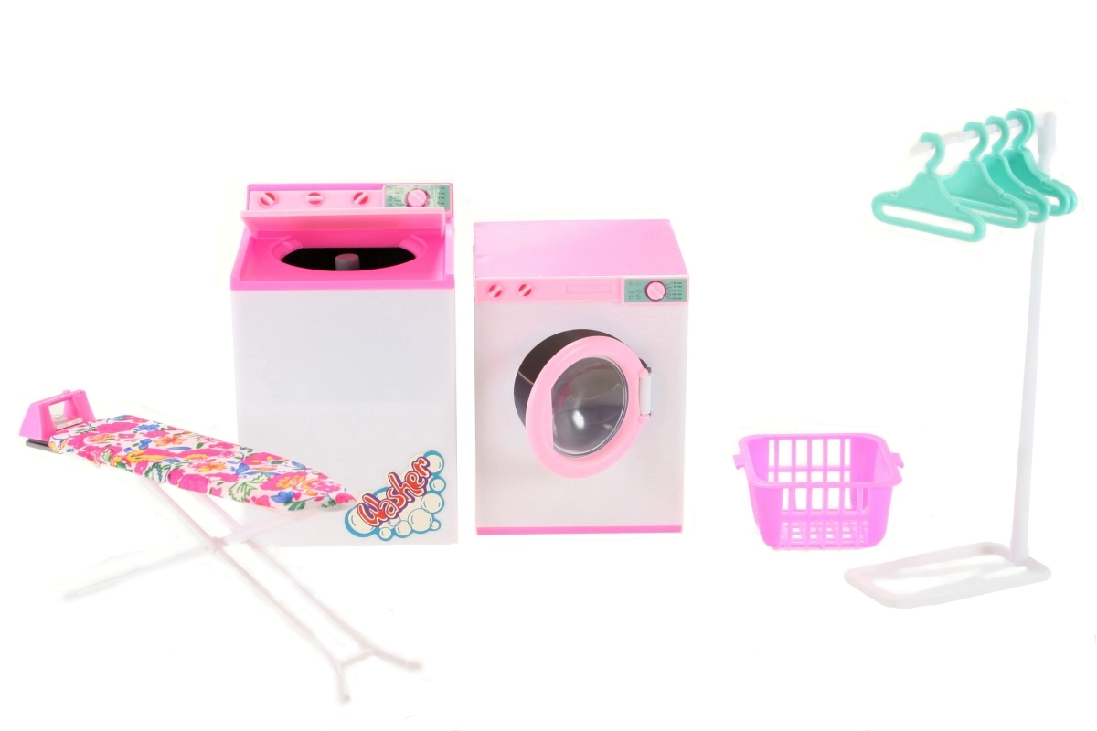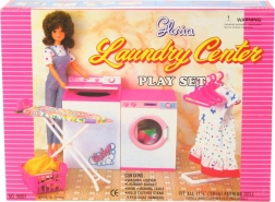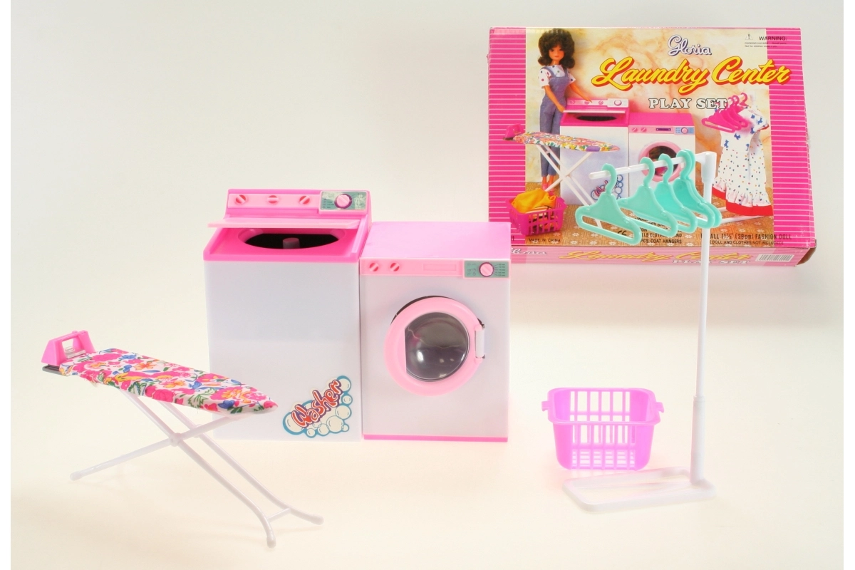 De leuke en gedetailleerde was-set voor poppen GLORIE bevat alles voor rollenspellen in huis: een wasmachine en droger met te openen kleppen, een strijkplank met strijkijzer, een kledingrek met hangers en een wasmand. Ideaal voor kinderen vanaf 3 jaar.