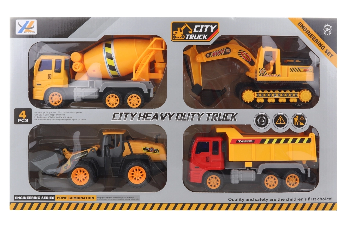 Ontdek een leuke bouwset voor kleine bouwers: een set van 4 voertuigen met een kippers, graafmachine, wiellader en betonmixer. Elk voertuig is ongeveer 19 × 10 cm (afhankelijk van het type) en ideaal voor kinderen vanaf 3 jaar.