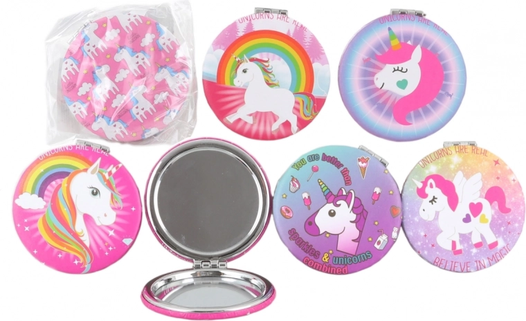 Stijlvol zakspiegeltje met een eenhoornmotief van 7 × 7 cm, ideaal voor in je handtas en op reis. Biedt een compact formaat, comfortabel gebruik en een schattig design dat liefhebbers van eenhoorns zal bekoren. Verpakt in een zakje. Dit product is geen speelgoed.