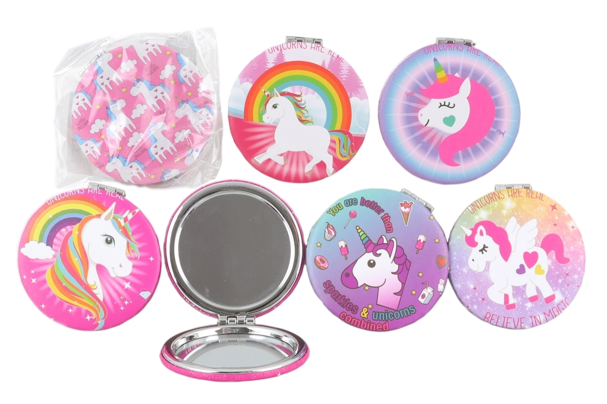 Het eenhoorndesign geeft je dagelijkse look een speelse touch. Het spiegeltje wordt geleverd in een beschermend zakje en is daardoor ook geschikt als klein cadeautje.
