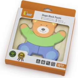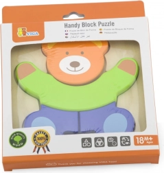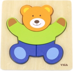 Houten mini puzzel van het bekende merk Viga voor kinderen, ideaal voor thuis en de peuterspeelzaal. De puzzel bestaat uit 4 stukjes die samen een beer vormen.