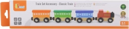 De Klassieke trein houten set bevat 4 delen die met magneten verbonden zijn. Dit speelgoed is ontworpen door de gerenommeerde fabrikant van houten speelgoed, Viga Toys. De set kan worden gebruikt als een op zichzelf staand speelgoed, of als een aanvulling op andere treinbanen, bouwsets en sets.