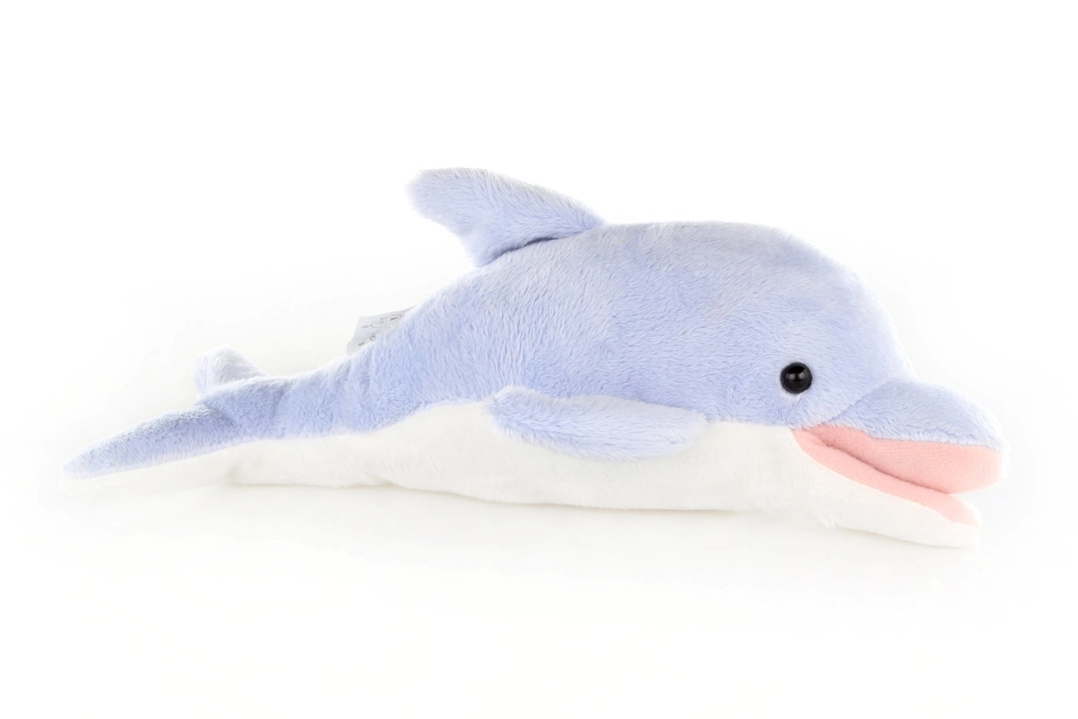 Een schattige pluchen dolfijn in lichtblauwe kleur die zowel kleine als grote zeeliefhebbers zal verrukken. Hij is heerlijk zacht, prettig om aan te raken en ideaal om mee te knuffelen. Compact formaat van 25 cm past in het bedje en is handig voor onderweg; hoogwaardige afwerking en zachte pluche zorgen voor veilig en langdurig speelplezier.
