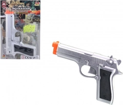 Leuk plastic kogelpistool van 21 cm voor kleine schutters vanaf 3 jaar. Eenvoudig veermechanisme, lichtgewicht constructie en in de verpakking zit ook een zakje kogeltjes voor direct speelplezier. Ideaal voor binnen en buiten, een veilige speelgoedkeuze voor kinderen met intuïtieve bediening.