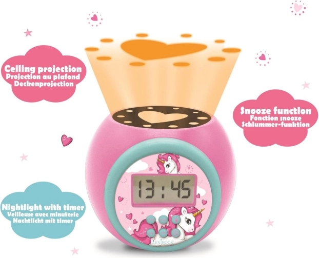 In slaap vallen en wakker worden met je favoriete helden! Dat is de wens van elke kleine avonturier. Dankzij de gebruiksvriendelijke interface is deze wekker ideaal voor dagelijks gebruik door zowel kinderen als volwassenen. Grote knoppen zorgen voor zeer intuïtieve en eenvoudige bediening; het gebruik van de klok is veilig voor kinderen. Ze kunnen de wekker zelf gemakkelijk aan- of uitzetten. Dankzij 3 geïntegreerde timers (5/10/15 min) is de wekker met projector perfect om zonder angst voor het donker in slaap te vallen.