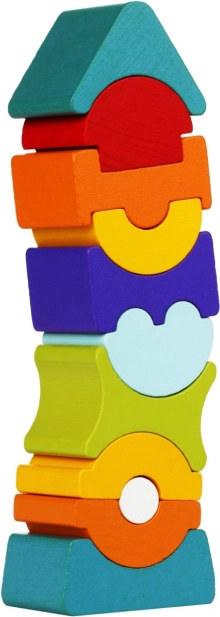 Afgeronde delen maken het mogelijk de toren rechtop te bouwen of naar de zijkant te kantelen. Kinderen oefenen bij elke poging hun geduld, coördinatie en ruimtelijk inzicht.
