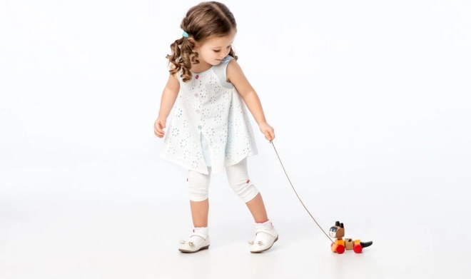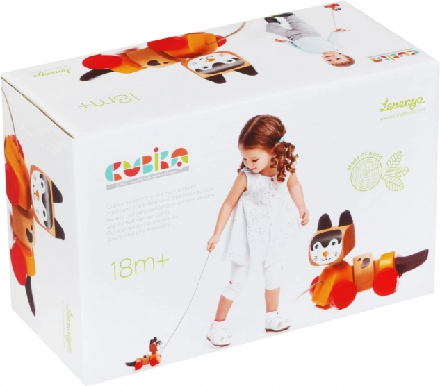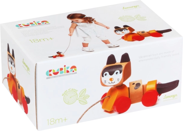 Het houten trekspeelgoed, ontworpen in de vorm van een vrolijk kitten, is ideaal voor plezier en voor de ontwikkeling van motorische vaardigheden van kinderen. Het speelgoed is uitgerust met een beweegbare romp en wielen, wat zorgt voor vloeiende en leuke bewegingen tijdens het trekken aan het koordje. Het kleurrijke design trekt de aandacht van kinderen en moedigt hen aan tot actief spel.