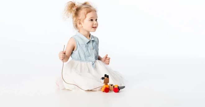 Dankzij de beweeglijkheid en de mogelijkheid om te trekken ondersteunt het speelgoed de ontwikkeling van de fijne motoriek.