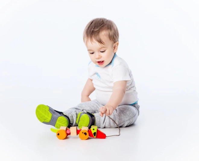 Dankzij de wieltjes en het touwtje is het speelgoed gemakkelijk te besturen en kunnen kinderen het overal mee naartoe trekken.