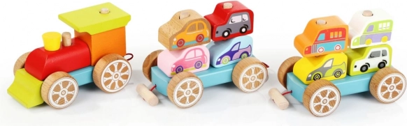 Deze kleurrijke houten puzzel bevat 14 onderdelen, waarmee kinderen een trein kunnen bouwen met twee wagons en acht autootjes. Ze spelen niet alleen met de losse onderdelen, maar ontwikkelen ook hun sensomotorische vaardigheden, logisch denken en creativiteit.
