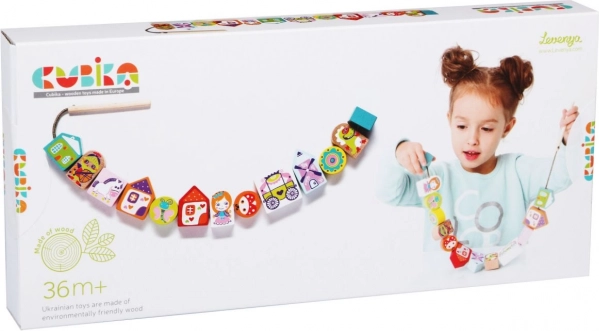 Rijgsprookje CUBIKA is een duurzame en veilige set ontworpen voor kinderen vanaf 3 jaar. Het gebruikt ecologisch gekweekt hout en niet-giftige kleuren, wat veiligheid en kwaliteit garandeert. Deze speelse set ondersteunt: