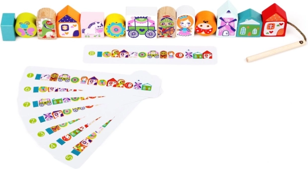 Rijgsprookje CUBIKA is het ideale spel voor kinderen, dat de fijne motoriek en creativiteit ontwikkelt. Deze houten set bevat 13 stukken met een sprookjesthema en 8 sjablonen voor leuk leren via spel.