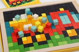 CUBIKA is een nieuw merk houten speelgoed, gemaakt uitsluitend van ecologisch geteeld hout, met zeer precieze afwerking en een aantrekkelijk design. Pixel IV auto’s is een houten mozaïek met 400 steentjes van 1 x 1 cm, 7 thematische voorbeelden en een houten frame. Kennis van kleuren en een beetje geduld zijn voldoende om van de afzonderlijke gekleurde steentjes prachtige afbeeldingen te maken. Het assortiment speelgoed van het merk CUBIKA helpt kinderen vooral bij de ontwikkeling van sensomotorische vaardigheden, logisch denken, creativiteit, verbeeldingskracht en diverse cognitieve kennis. Het speelgoed is vervaardigd van hoogwaardig esdoorn- en beukenhout en voor de kleuring worden eveneens hoogwaardige watergedragen verven gebruikt, die volledig veilig zijn voor kinderen en geurloos. Alle producten van dit merk hebben het Duitse TÜV-certificaat en zijn geproduceerd volgens de Europese speelgoedveiligheidsnorm EN 71. Niet geschikt voor kinderen jonger dan 5 jaar. Gemaakt in Europa.