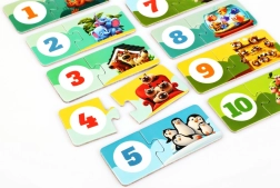 Leuke leerset voor de allerkleinsten: 20 stevige stukjes vormen 10 paren, die kinderen koppelen op basis van het aantal dieren en de cijfers 1–10. Het spel stimuleert logisch denken, fijne motoriek en cijferherkenning, is gemaakt van duurzaam meerlaags karton en is eenvoudig te onderhouden door af te nemen met een vochtige doek.