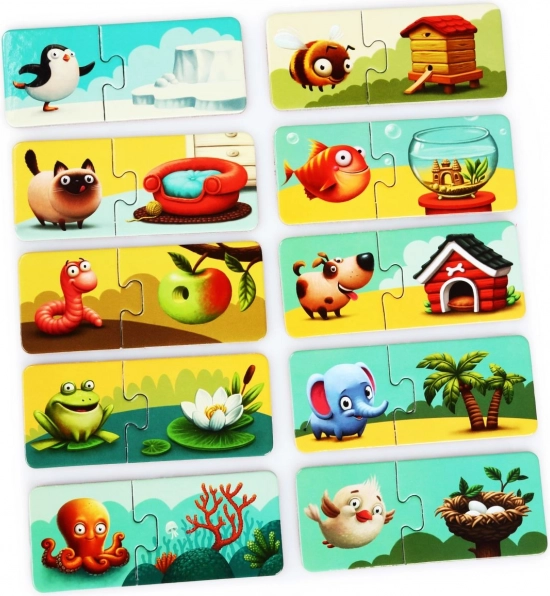 De leuke set Puzzlika Mijn Thuis leert kinderen dieren te koppelen aan hun woonplek. Bevat 20 grote, stevige stukjes die 10 paren vormen. Ondersteunt logisch denken, ontwikkeling van de fijne motoriek, herkenning van dieren en hun omgeving en visuele waarneming. Gemaakt van duurzaam meerlaags karton met een glanzende afwerking, gemakkelijk schoon te maken en ideaal voor kleuters.
