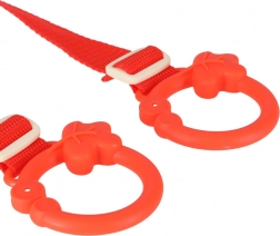 Het speelgoed is eenvoudig te bevestigen aan de achterkant van de stoel met plastic ringen, die stabiliteit en veiligheid garanderen.