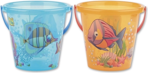 Deze doorzichtige emmer met visjesmotief is een geweldige hulp bij spelen in het zand en met water. Dankzij de kwaliteitsafwerking en het lichte ontwerp ligt hij prettig in kinderhanden, terwijl hij stevig genoeg is voor dagelijks speelplezier.