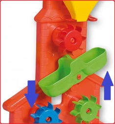 Kijk hoe de kleurrijke wielen gaan draaien en hoe het gootje de stroom verdeelt. Spel stimuleert zintuiglijke waarneming en logisch denken.